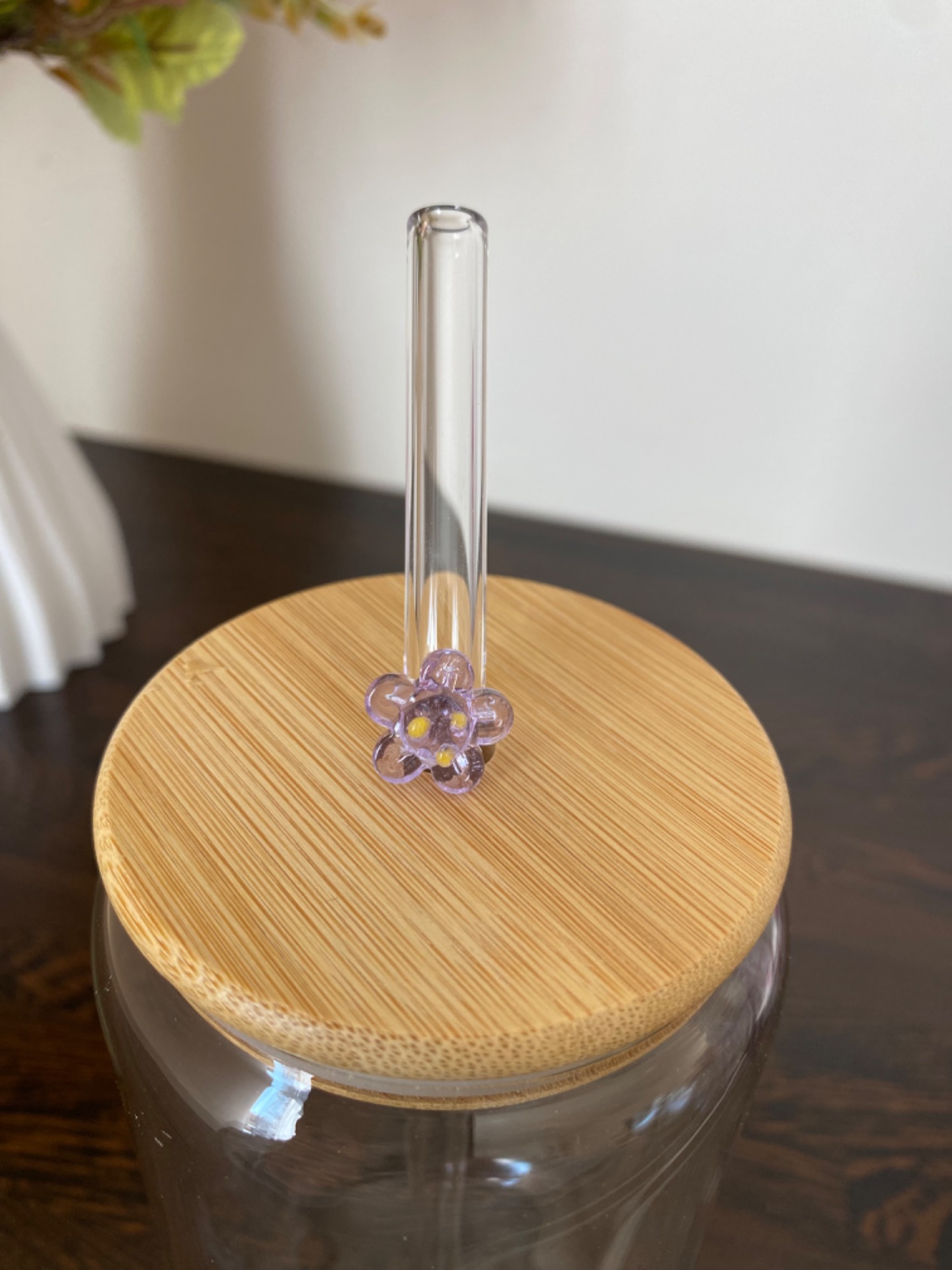 Skleněné brčko - kytička růžová