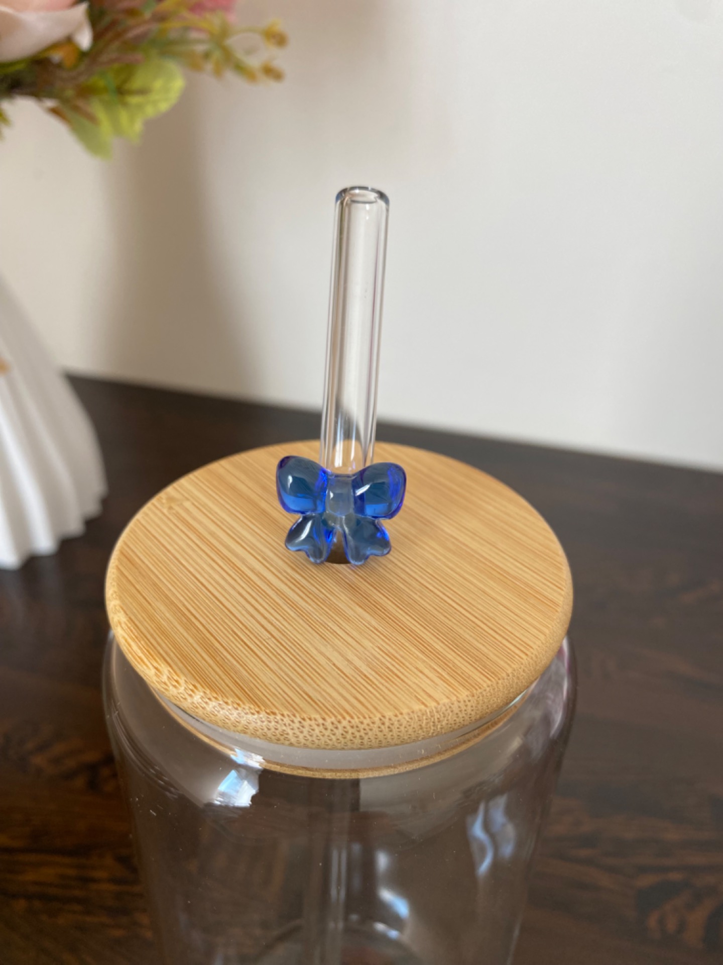 Skleněné brčko - mašlička modrá