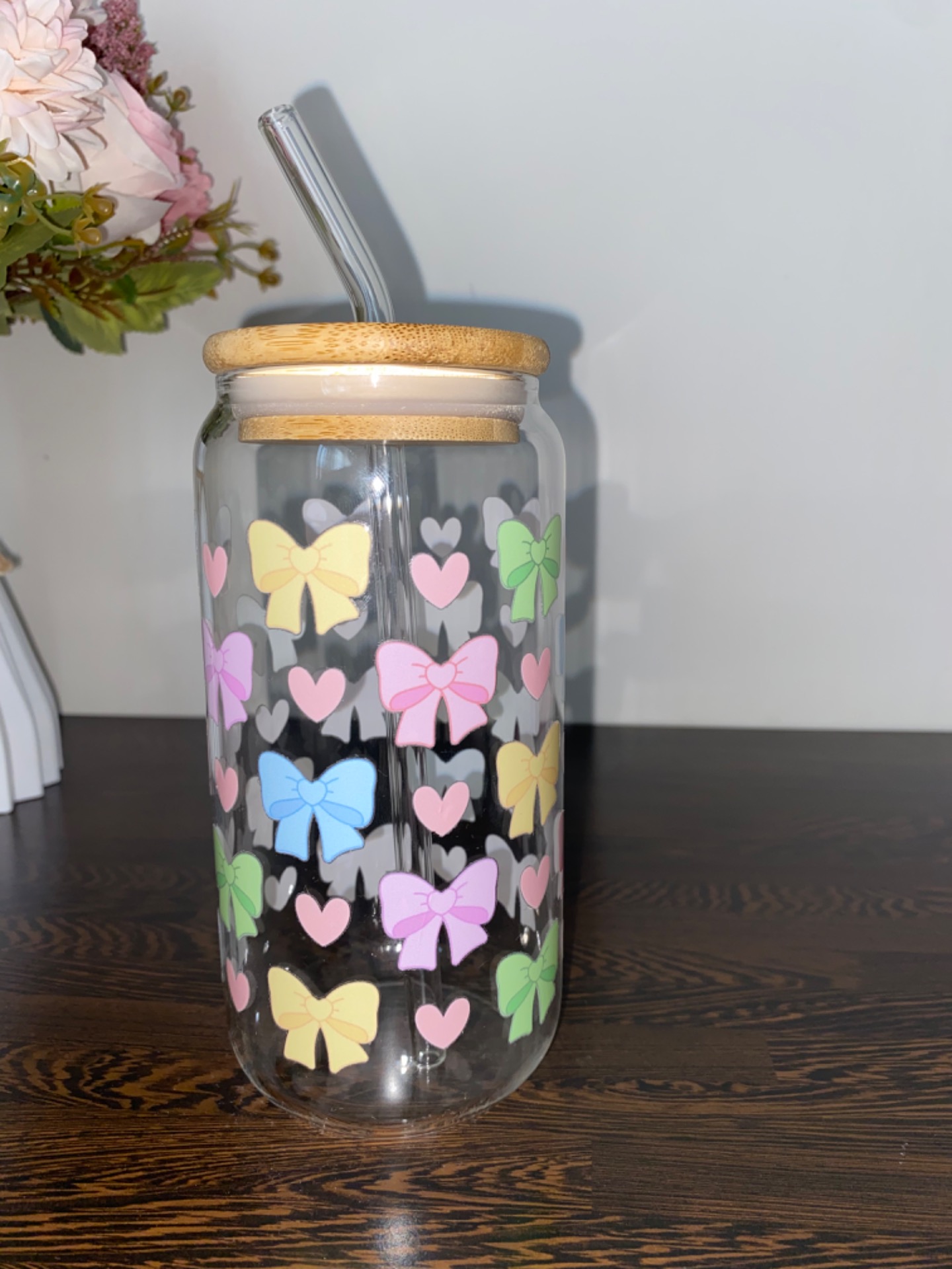 Sklenička - barevné mašličky