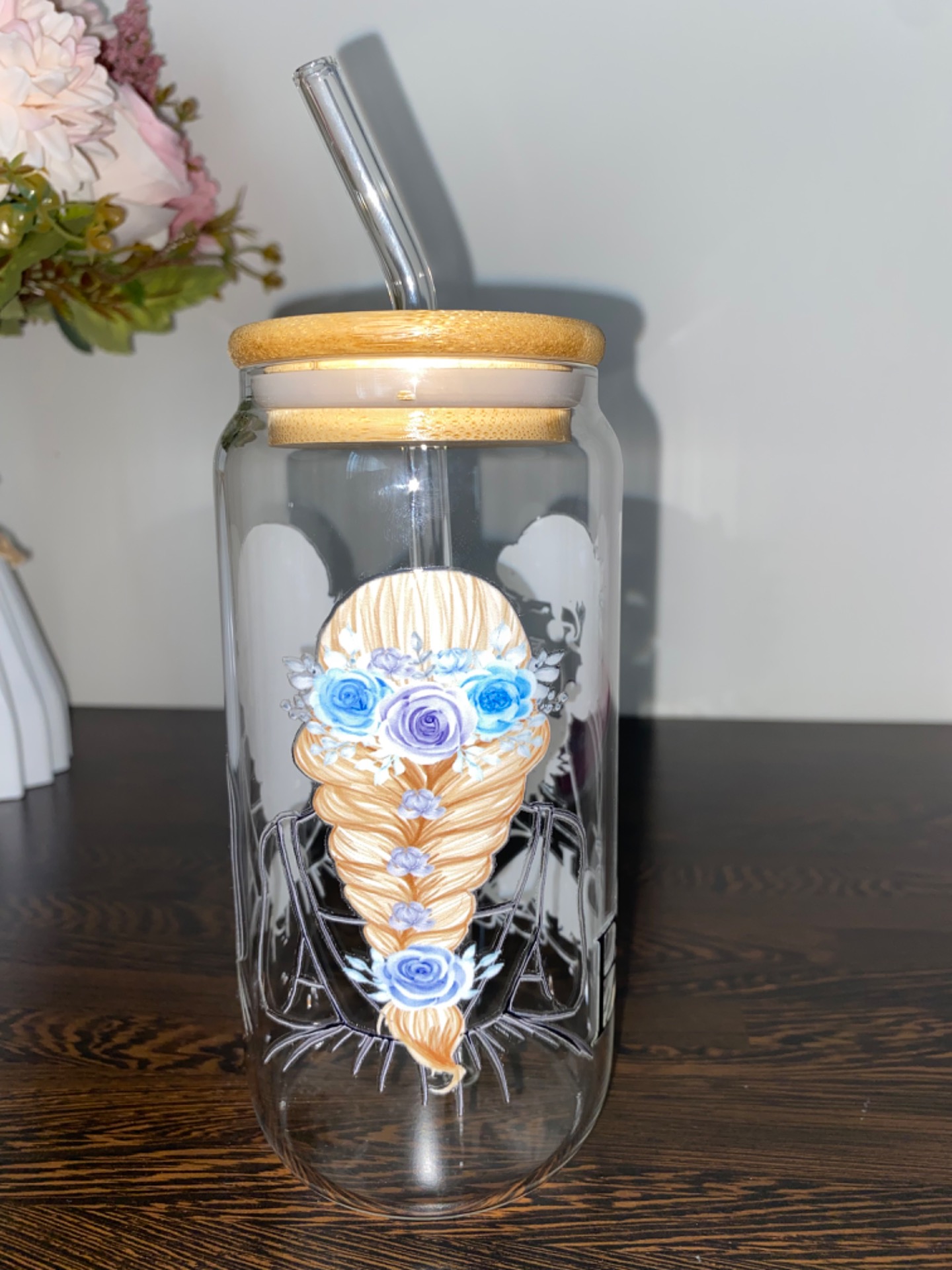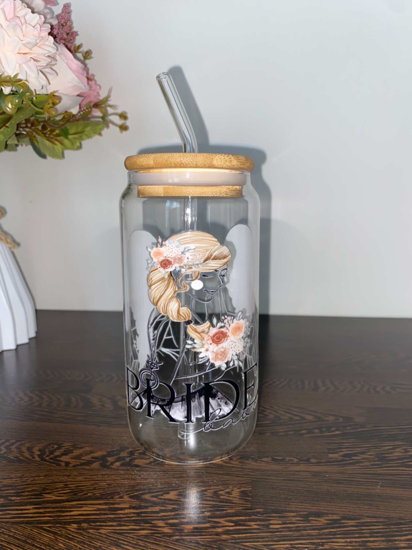 Součástí balení bambusové víčko a skleněné brčko