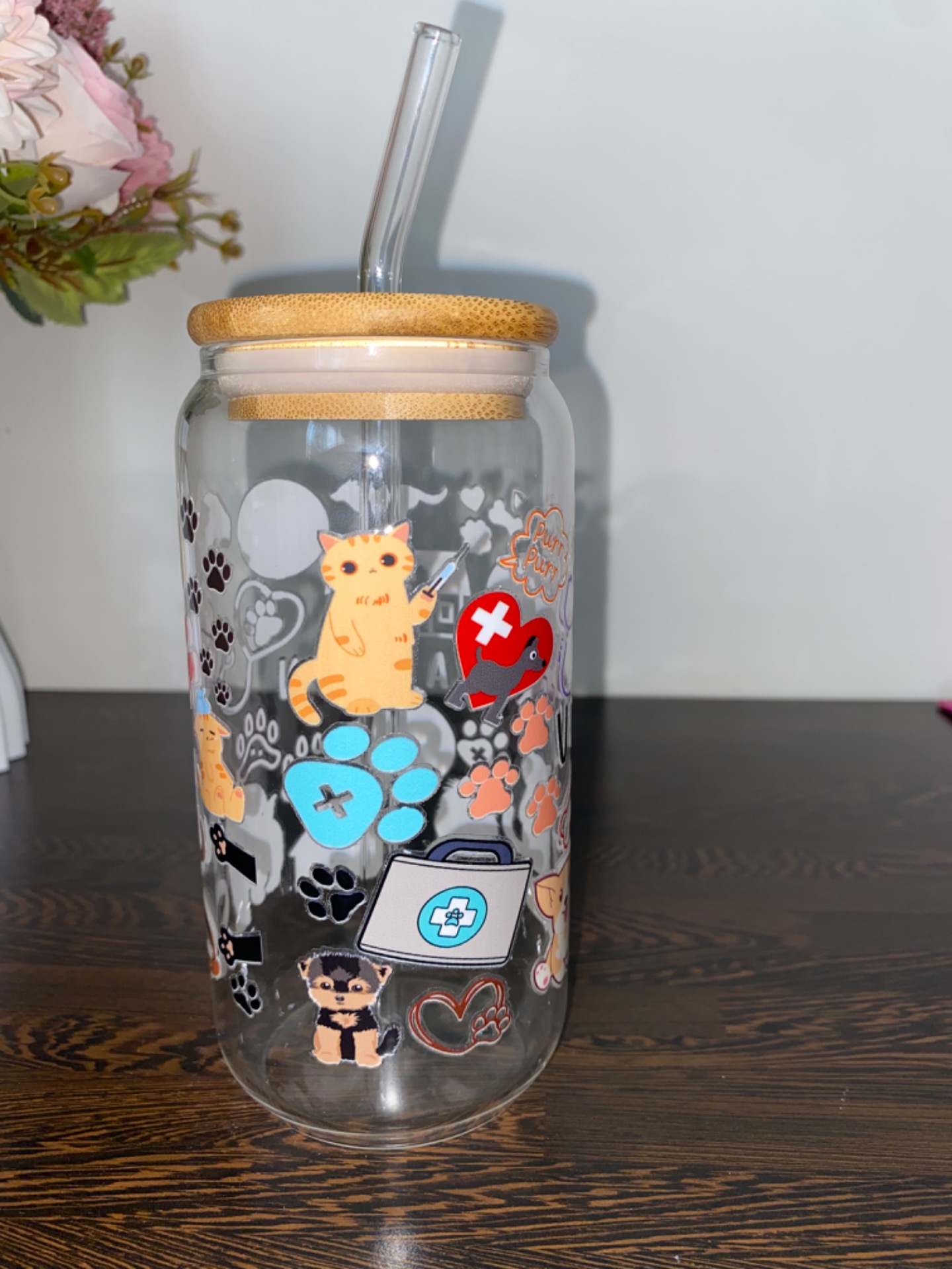 Sklenička s vinylovým polepem